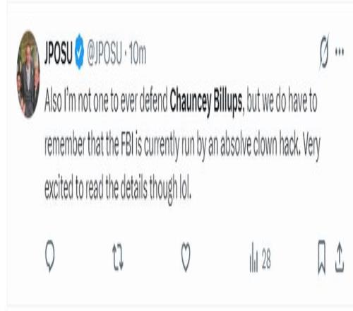 美记:我肯定不会为比卢普斯辩护,但我们需要知道,目前的FBI是由一个十足的蠢蛋来管理的,所以我希望看到昌西非法赌球的细节,我很期待,哈哈哈。