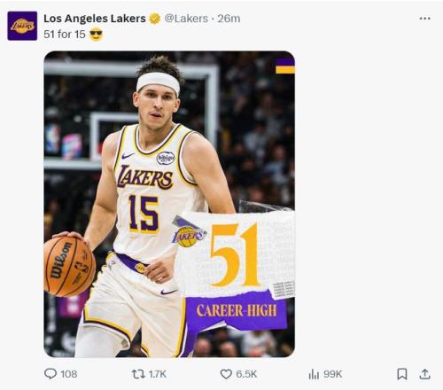 51+11+9!生涯新高!里夫斯,湖人赶紧续约吧...