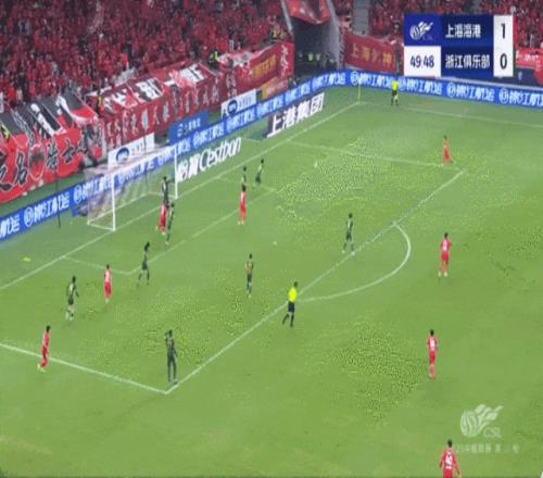 第50分钟,李帅传中落到浙江队禁区右侧,队长王燊超跟进,迎球一脚凌空爆射打出一记神仙世界波破门,场上比分海港2比0浙江。这粒进球相当精彩,足以当选中超年度最佳进球。