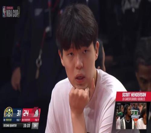 对阵掘金,杨瀚森没有获得任何出场机会,NBA生涯的第一次。