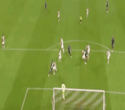 第32分钟,场上僵局被打破:普罗沃德禁区内手球送点,萨卡主罚命中,阿森纳1-0领先,萨卡成为阿森纳欧冠改制后首位连续四场客场破门的球员。
