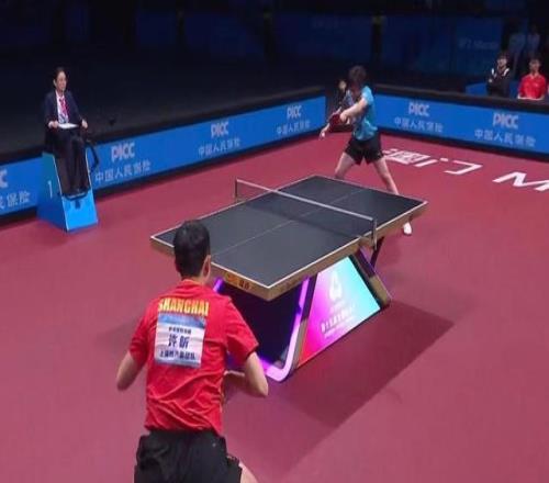 第二场比赛中,上海队的樊振东8-11、11-7、11-3、11-9战胜北京队的王楚钦,两队总比分1比1战平。