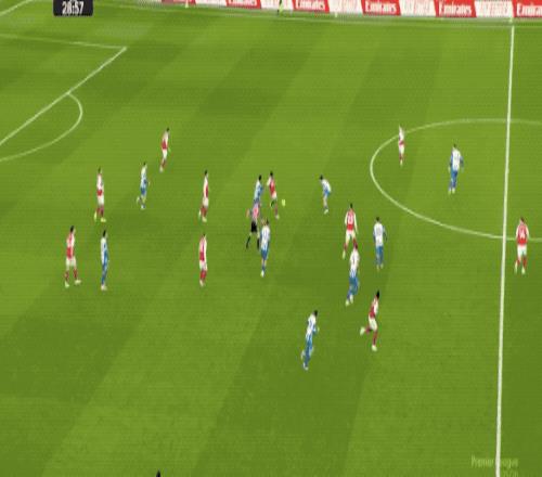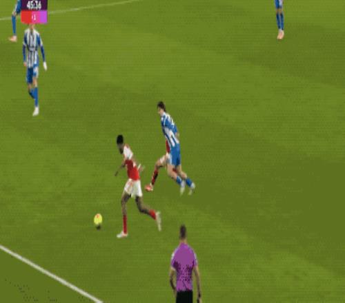 第30分钟,因卡皮耶送出妙传,萨卡停球不太舒服,但迅速调整后依旧强行进入禁区传球,防守球员将球解围。