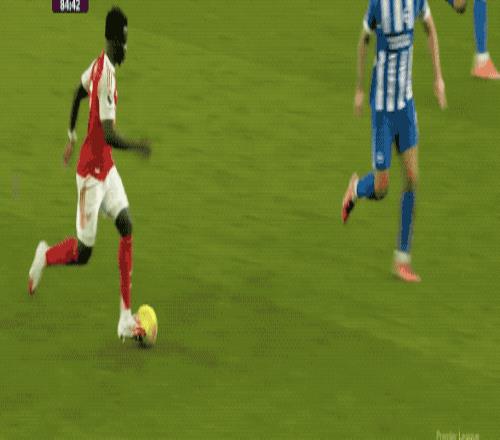 第14分钟,布莱顿的传球被抢断,萨卡送出助攻,厄德高打近角得手,枪手早早取得领先。