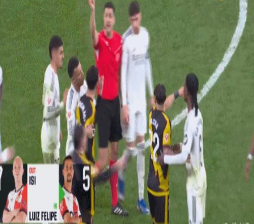 第80分钟,西斯对塞瓦略斯暴力犯规,主裁判直接出示红牌将其罚下!