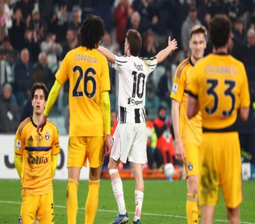 意甲第23轮帕尔马1比4尤文图斯51’(乌龙)安德烈亚·坎比亚索 / 15’54’布雷默、37’麦肯尼、64’戴维体坛周...